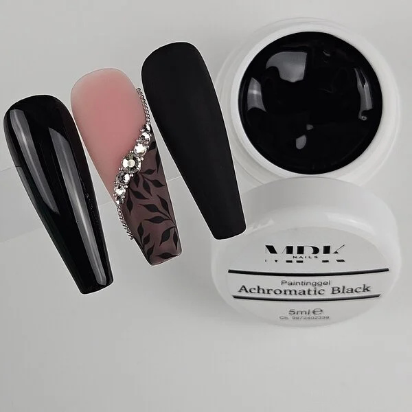 Ob glamourös, minimalistisch oder extravagant – Nageldesign in Schwarz ist immer ein Statement. Die Farbe wirkt edel, geheimnisvoll und vielseitig kombinierbar. Mit hochwertigen Produkten wie unseren Farbgelen, Versieglern und Effekt-Pudern gelingt dir das perfekte Styling sowohl im Studio als auch zu Hause.