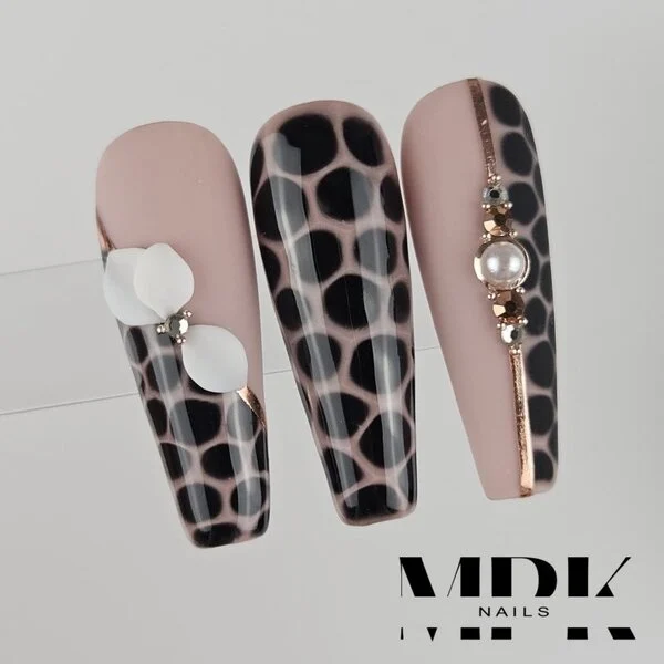 Metallische Akzente in Silber, Gold oder Chrome sind perfekte Partner für Schwarz. Sie bringen Glanz und Tiefe ins Design und wirken gleichzeitig sehr edel. Besonders beliebt: Chrome Powder in Kombination mit einem schwarzen Untergrund.