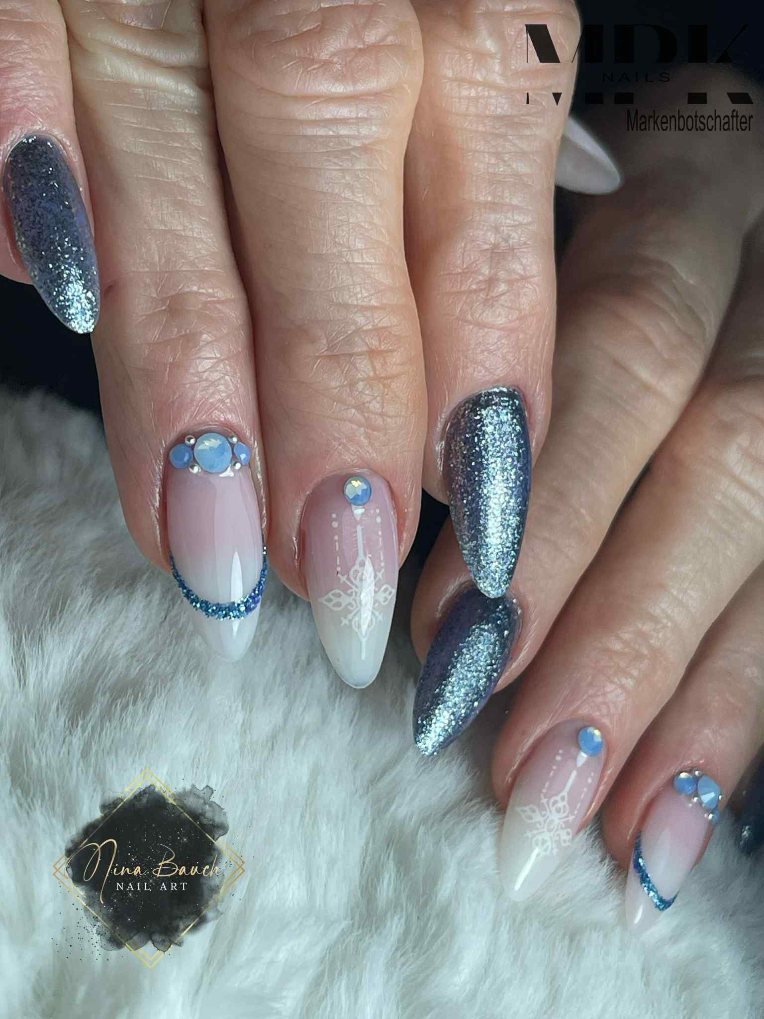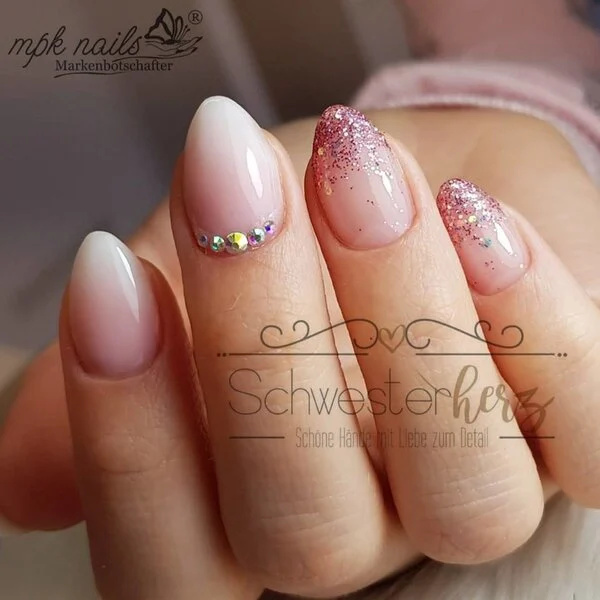 mit dezenten Nailart-Akzenten wie Strass oder Folien.