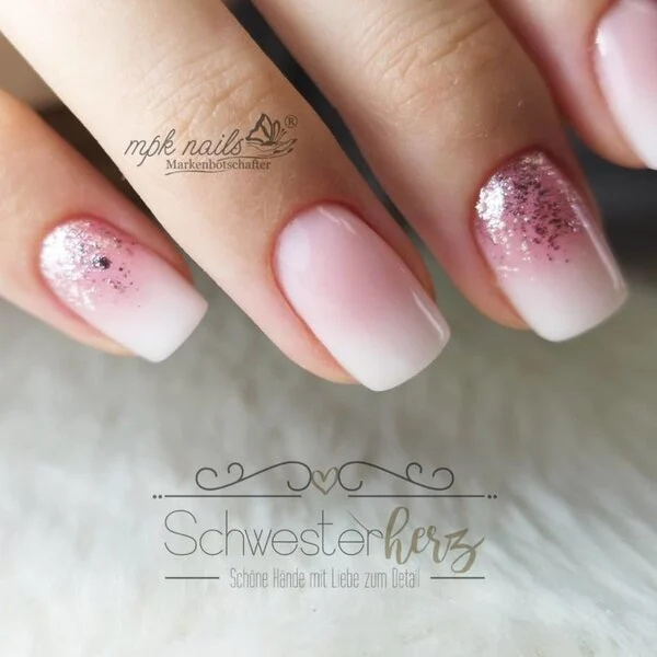 Der Begriff „Babyboomer Nägel“ beschreibt ein ganz bestimmtes Nageldesign: Ein sanfter Farbverlauf von einem natürlichen Rosé- oder Nude-Ton hin zu einer strahlend weißen Nagelspitze. Im Gegensatz zur klassischen French Maniküre, bei der die weiße Spitze hart abgegrenzt ist, zeichnet sich der Babyboomer durch weiche Übergänge und einen natürlichen Ombre-Effekt aus.